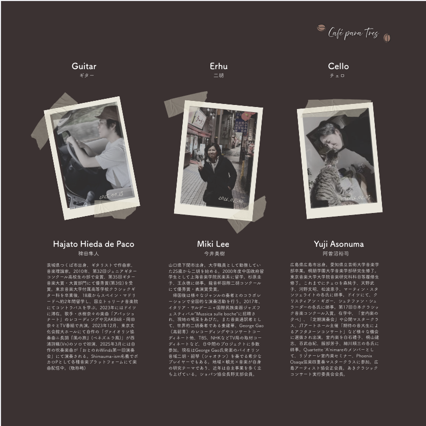 ギター、二胡、チェロで紡ぐ上質な時間
